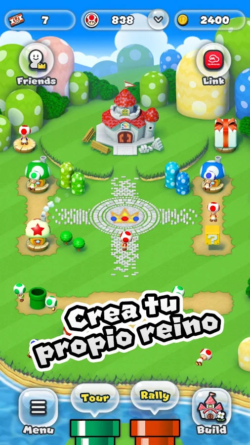 Consigue monedas y recluta toads para construir tu propio reino.