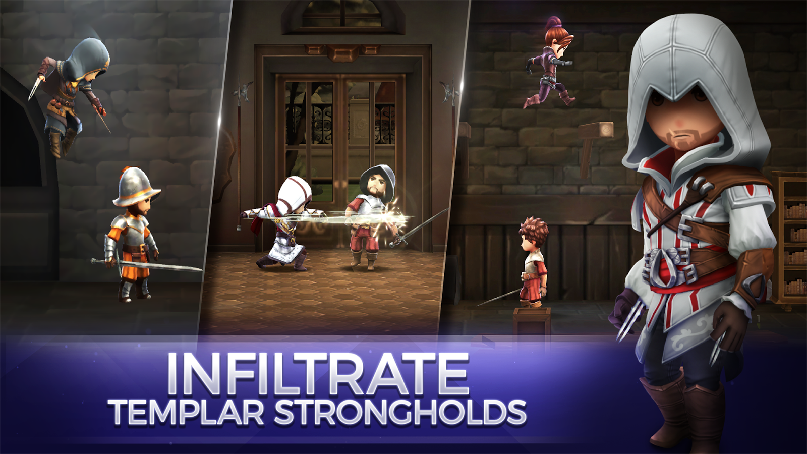 Unirse a Ezio, Aguilar, Shao Jun y otros asesinos legendarios en nuevas aventuras! Construir su propia Hermandad y de infiltrarse en las fortalezas de los templarios en la primera Estrategia-RPG del universo Credo de los Asesinos!